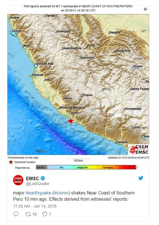Σεισμός 7,3 Ρίχτερ στο Περού – Προειδοποίηση για τσουνάμι