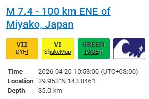 また、岩手県、北海道太平洋沿岸中部、青森県太平洋沿岸に津波警報が発表されるなどしています。…— 高市早苗 (@takaichi_sanae) April 20, 2026