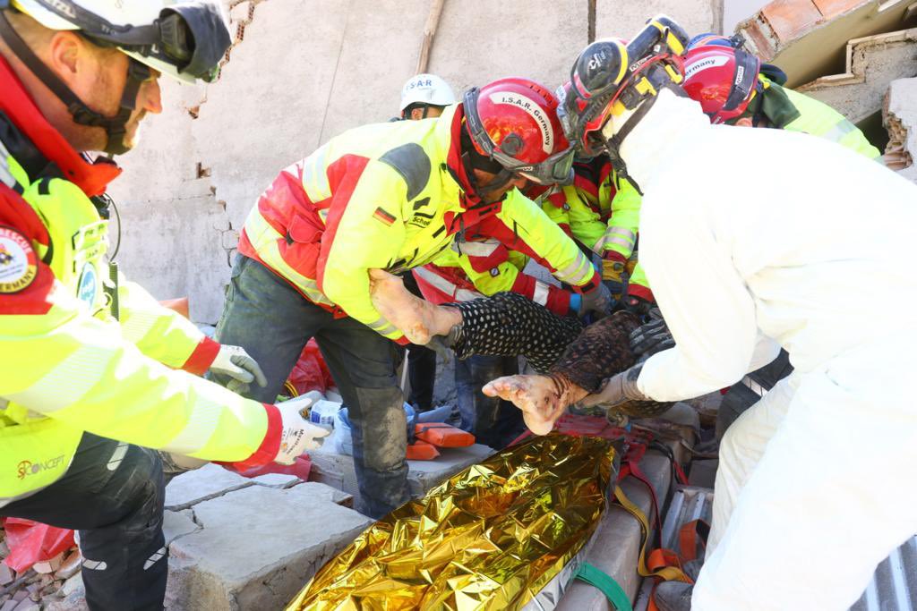 «Η ομάδα διάσωσης χρειάστηκε περισσότερες από 50 ώρες για να περάσει μέσα από τα ερείπια και να προσεγγίσει τη γυναίκα», έγραψε στο Twitter η γερμανική ΜΚΟ I.S.A.R. Germany.