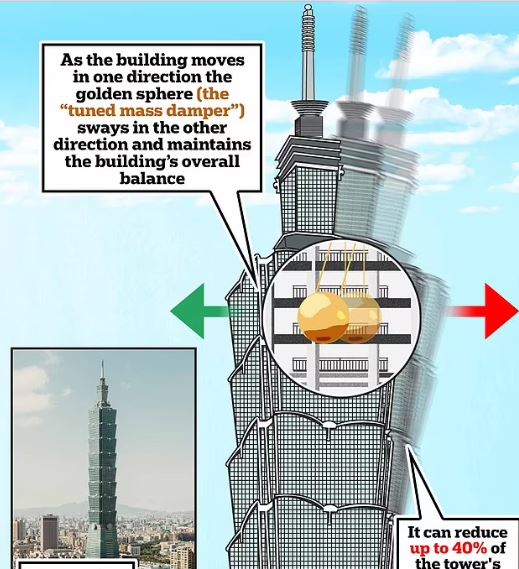 Αν και είναι περίεργο να βλέπεις ένα κτίριο να ταλαντεύεται, οι σύγχρονοι ουρανοξύστες είναι κατασκευασμένοι για να είναι ευέλικτοι, ειδικά σε σεισμογενείς ζώνες όπως η Ταϊβάν.