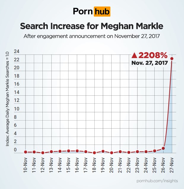 Η Μέγκαν Μαρκλ είναι αναμφισβήτητα το πρόσωπο της εβδομάδας, καθώς μετά την ανακοίνωση του αρραβώνα της και του επικείμενου γάμου της με τον Πρίγκιπα Χάρι, όλοι θέλουν να μάθουν τα πάντα γι αυτή!Βέβαια, υπάρχουν και κάποιοι που θέλουν να μάθουν πολλά … περισσότερα και έτσι αναζητούν στην ιστοσελίδα Pornhub για sextapes της Αμερικανίδας ηθοποιού, παρά το γεγονός πως είναι αμφίβολο ότι υπάρχει. Η αύξηση στην αναζήτηση του ονόματός της στη συγκεκριμένη ιστοσελίδα έχει εκτοξευτεί στο 2.208%. Αυτοί που ενδιαφέρονται περισσότερο να βρουν βίντεο ερωτικού περιεχομένου με τη μέλλουσα Δούκισσα του Σάσεξ είναι οι Αμερικανοί και οι Βρετανοί. Ασφαλώς, από τη λίστα δεν θα μπορούσαν να απουσιάζουν οι Έλληνες, οι οποίοι καταλαμβάνουν την δωδέκατη θέση!