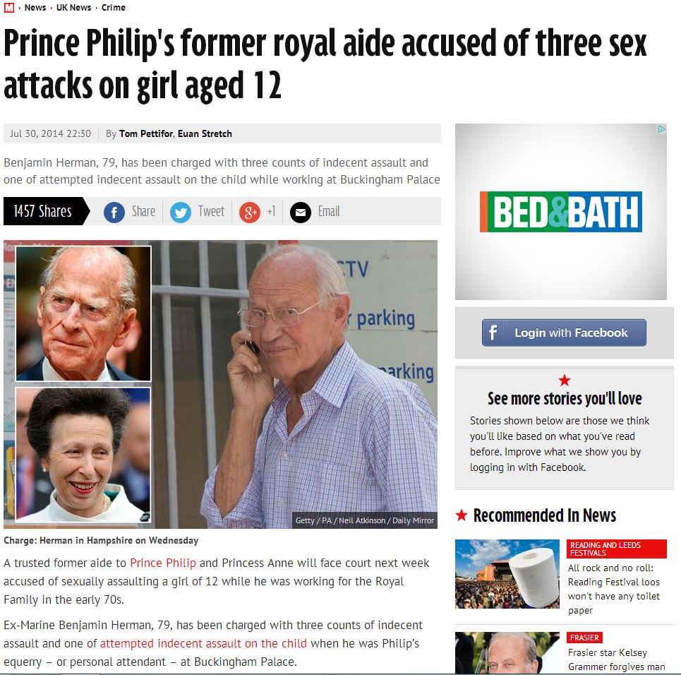 Ένας πρώην ιπποκόμος του πρίγκιπα Φιλίππου, του συζύγου της βασίλισσας Ελισάβετ του Ηνωμένου Βασιλείου, κατηγορείται για την σεξουαλική κακοποίηση ενός 12χρονου κοριτσιού τη δεκαετία του 70, μία περίοδο κατά την οποία εργαζόταν για την βασιλική οικογένεια, ανακοίνωσαν σήμερα εισαγγελείς.