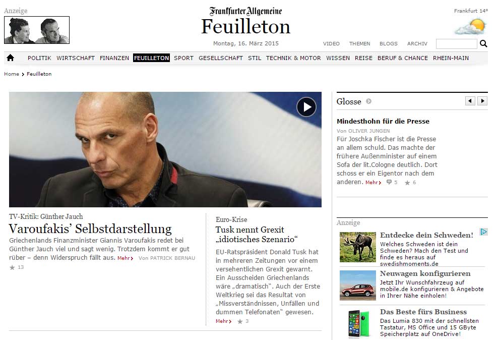 FAZ: Παρουσία του Βαρουφάκη στην εκπομπή του Günter Jauch