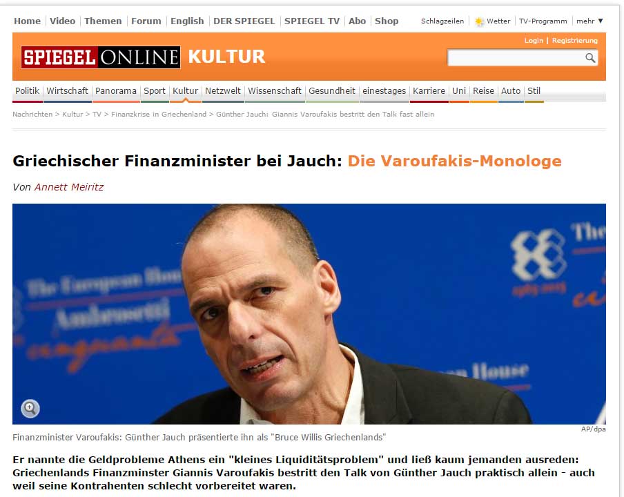 Spiegel: Ο μονόλογος του Βαρουφάκη στην εκπομπή του Jauch