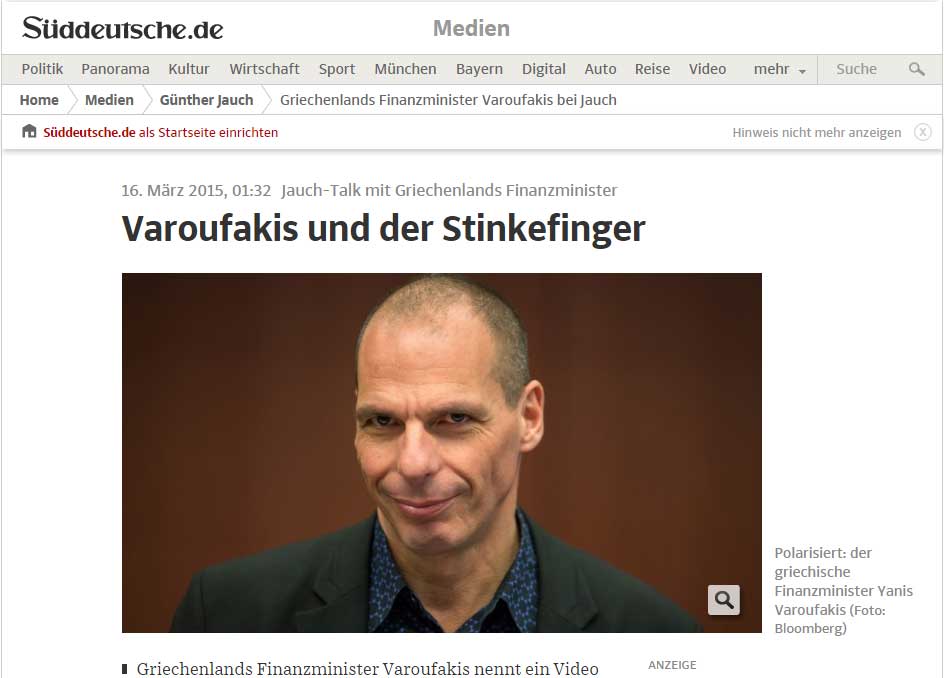 Sueddeutsche: Ο Βαρουφάκης και το μεσαίο δακτυλο