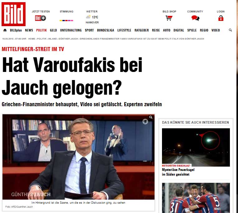 Bild: Έχει πει ψέματα (για την χειρονομία) ο Βαρουφάκης στον Jauch;