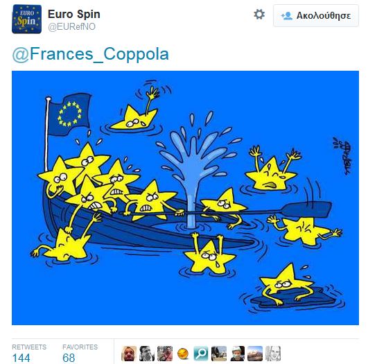 Ένα σκίτσο που δείχνει τα «αστέρια» της Ευρωπαϊκής Ένωσης να καυγαδίζουν γύρω από το Grexit και το Brexit κυκλοφορεί στο twitter.