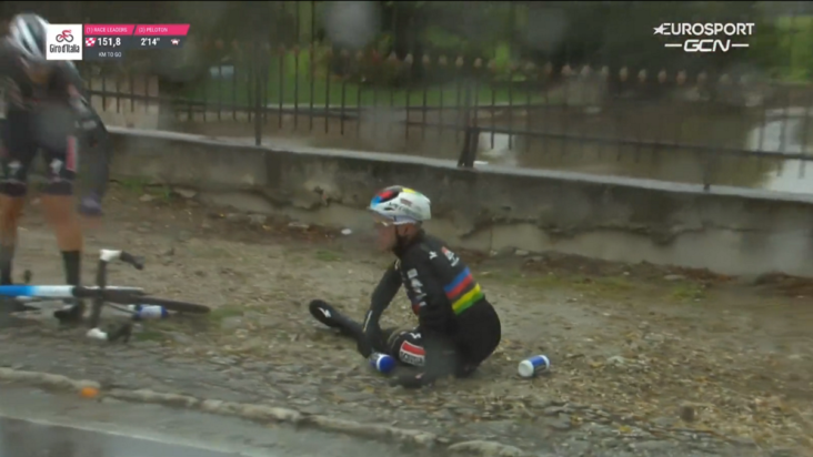 Ο παγκόσμιος πρωταθλητής Evenepoel, ο οποίος οδηγούσε τον αγώνα μέχρι το τέταρτο ετάπ της Τρίτης προς το Lago Laceno, δέχτηκε τη φροντίδα του γιατρού του αγώνα πριν τον βοηθήσει να ανέβει ξανά στο ποδήλατό του και να συνεχίσει και αυτός και ο Ballerini.