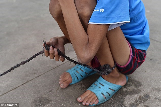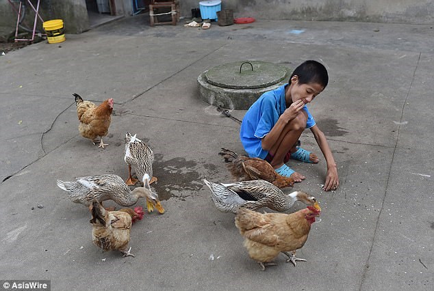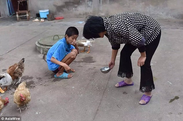 Οι απάνθρωπες συνθήκες κάτω από τις οποίες ζει ο Yang Jie αποκαλύφθηκαν μετά τη δημοσίευση φωτογραφιών σε τοπική ιστοσελίδα. Όπως φαίνεται στις εικόνες, ο 17χρονος με το ένα πόδι του δεμένο με σχοινί στο καπάκι του πηγαδιού τρώει στο πάτωμα, ενώ δίπλα του βρίσκονται κότες.