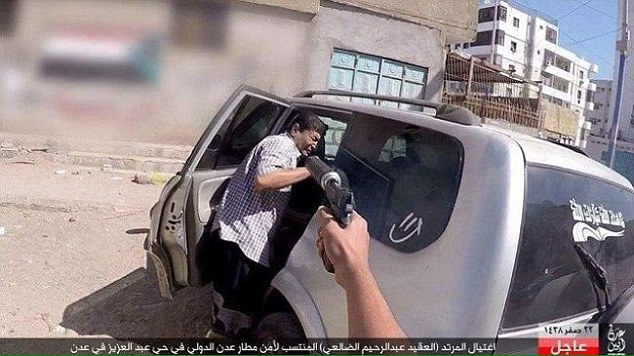 Οι εικόνες που έδωσαν στη δημοσιότητα οι τζιχαντιστές από την εν ψυχρώ δολοφονία του αξιωματικού της Υεμένης Abd Al-Rahim Al-Dale’i σοκάρουν.