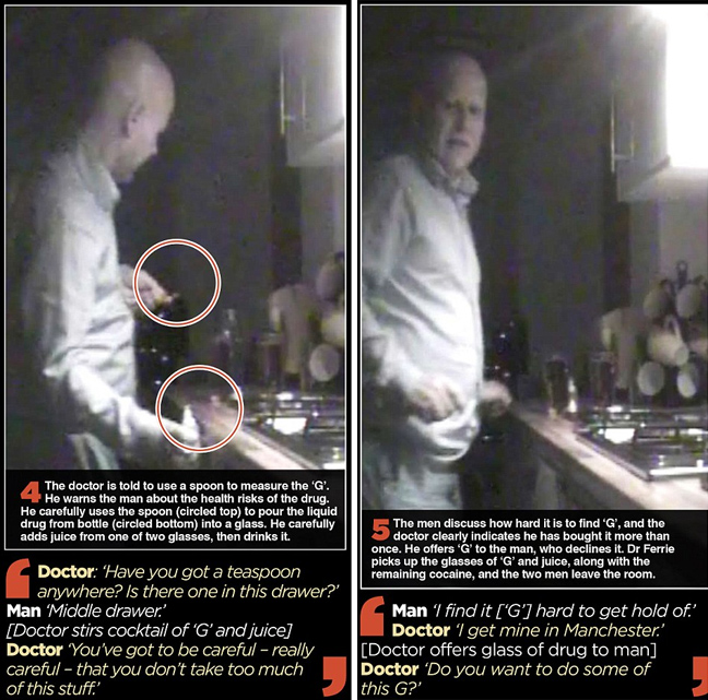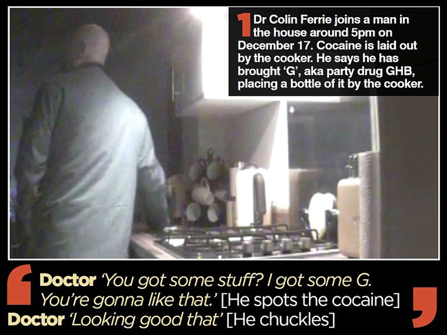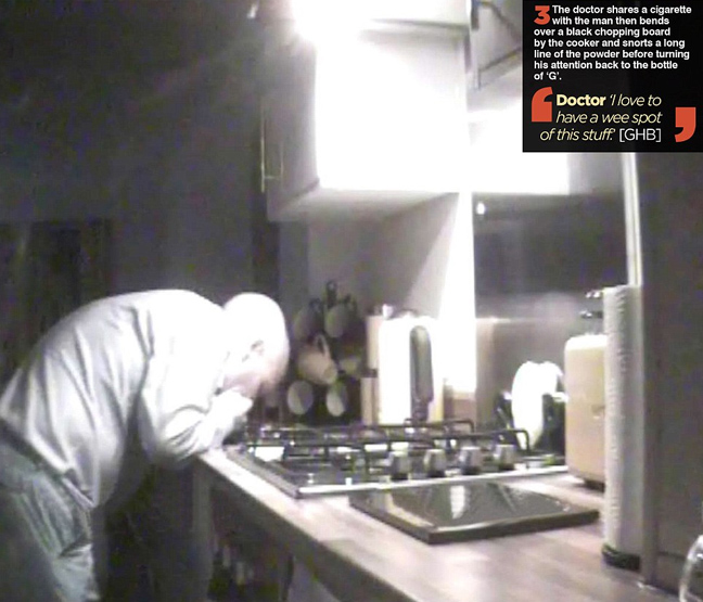 Η Daily Mail, παρουσιάζει βίντεο από κρυφή κάμερα με τον επιστήμονα να σκύβει σε πάγκο κουζίνας του νοσοκομείου και να καταναλώνει κοκαΐνη και προηγουμένως ζητάει μια σύριγγα για να μετρήσει το ισχυρό ηρεμιστικό GHB, γνωστό ως «το χάπι του βιασμού».