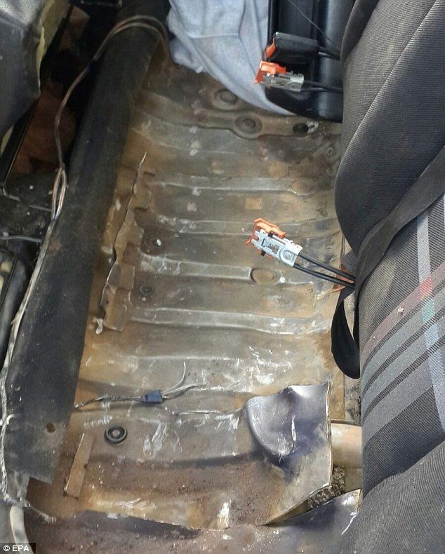 Οι φωτογραφίες που είδαν το φως της δημοσιότητας σοκάρουν, Ο ένας μετανάστης, σύμφωνα με τα διεθνή ΜΜΕ, ήταν χωμένος στο ταμπλό του ΙΧ, ενώ η γυναίκα μετανάστρια κάτω από το πίσω κάθισμα.