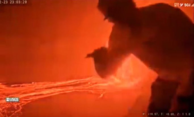 Όσοι παρακολουθούσαν το live stream της Γεωλογικής Υπηρεσίας των ΗΠΑ (USGS) έμειναν άφωνοι όταν εντόπισαν δύο άνδρες να περπατούν ατάραχοι μπροστά από τις εκρηκτικές πηγές λάβας, ακριβώς μπροστά από την κάμερα V1cam στην κορυφή του ηφαιστείου.