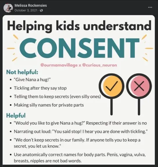 Μεγάλη ειρωνεία αποτελεί το γεγονός πως τον Οκτώβριο του 2021 σε σελίδα που φέρεται να της ανήκει στο Facebook, η Rockensies παρουσίαζε τρόπους με τους οποίους τα παιδιά μπορούν «να κατανοήσουν τη συναίνεση».