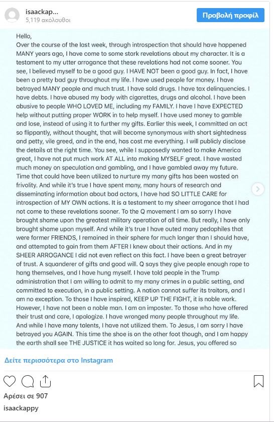 Έφυγε από τη ζωή στα 42 του χρόνια ο ηθοποιός Ισαάκ Κάππι, που έγινε γνωστός από τον ρόλο του στην ταινία “Εξολοθρευτής: Η Σωτηρία”. ενώ είχε και έναν μικρό ρόλο στο “Θορ”. Σύμφωνα με τις πληροφορίες, ο ηθοποιός έθεσε τέλος στη ζωή του πέφτοντας από γέφυρα στην Αριζόνα.