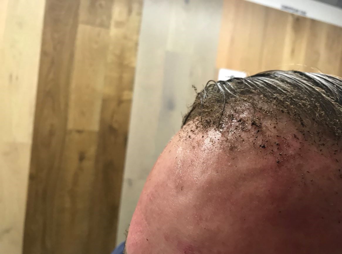 Ο -τυχερός μέσα στην ατυχία του- επιβάτης ανέβασε στο Twitter φωτογραφίες όπου φαίνεται ο τραυματισμός που υπέστη από τη φωτιά που ξέσπασε μετά την έκρηξη.