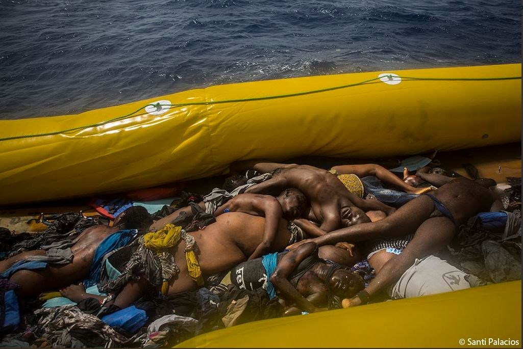 Οι εικόνες είναι συγκλονιστικές. Στον πάτο της βάρκας βρίσκονται στοιβαγμένα τα άψυχα σώματα , το ένα πάνω στο άλλο, ενώ εξουθενωμένοι οι υπόλοιποι μετανάστες κάθονται, φορώντας τα σωσίβιά τους.