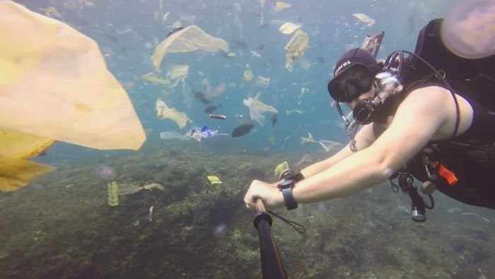 Το Μπαλί έχει χαρακτηριστεί ως «επίγειος παράδεισος» από τουριστικούς πράκτορες και επισκέπτες. Ωστόσο, ο Βρετανός Ριτς Χόρνερ και η υποβρύχια κάμερά του αποδεικνύουν πως κάτω από τον επίγειο παράδεισο υπάρχει μία … υποβρύχια κόλαση!Η θαλάσσια ρύπανση λόγω των αναρίθμητων πλαστικών απορριμμάτων μοιάζει ανεξέλεγκτη στον βυθό του Μπαλί. Όπως μπορείτε να δείτε στο βίντεο, όπου κοιτάξει κανείς, βλέπει μία θάλασσα γεμάτη πλαστικά σκουπίδια, την ώρα που τροπικά ψάρια κολυμπούν ανάμεσά τους.