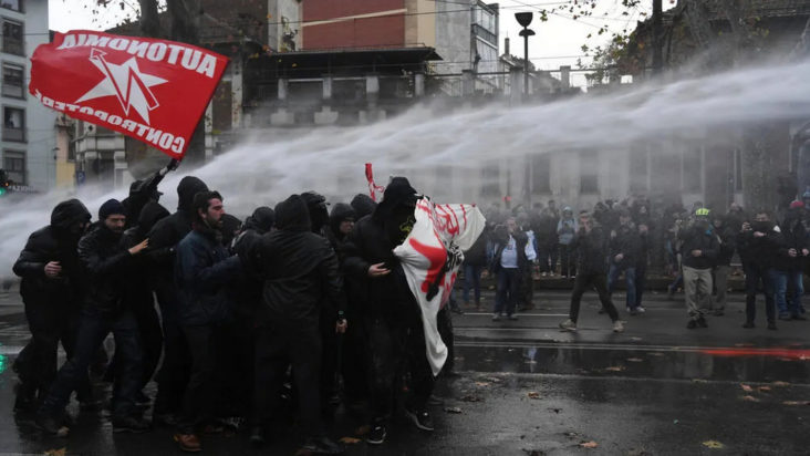 Ένα όχημα της αστυνομίας πυρπολήθηκε και συνεργείο της ιταλικής δημόσιας τηλεόρασης Rai έγινε στόχος επίθεσης από μέρους βίαιων διαδηλωτών.