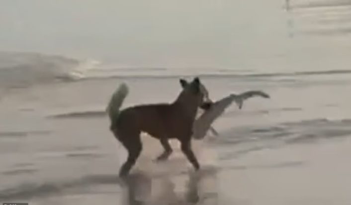 Προσπάθησε δύο φορές να τον απελευθερώσει, αλλά πριν προλάβει να απομακρυνθεί μακριά στα βαθιά, ένας… πεινασμένος ντίγκο έτρεξε στα ρηχά και τον άρπαξε.