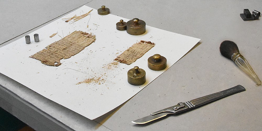 Το κείμενο είναι το ίδιο και στις δύο πλευρές και πρόκειται για πολλά φύλλα τα οποία έχουν κολλήσει το ένα με το άλλο. Ειδικός επιστήμονας για τους πάπυρους κατάφερε να διαχωρίσει τα φύλλα αφού τα σάρωσε με υπεριώδη και υπέρυθρη ακτινοβολία.
