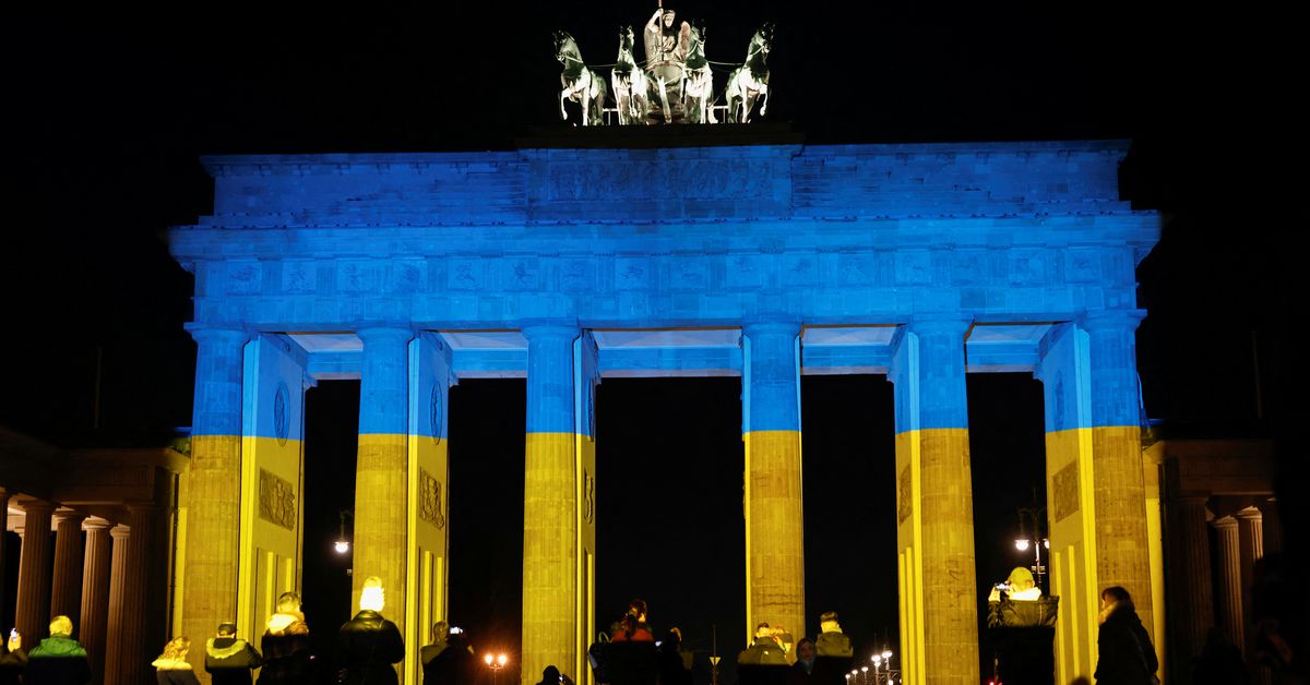 Στα χρώματα της ουκρανικής σημαίας φωτίστηκε η Πύλη του Βρανδεμβούργου στο Βερολίνο, το πιο αναγνωρίσιμο σύμβολο της γερμανικής πρωτεύουσας, σε μία ένδειξη αλληλεγγύης και ενότητας στο Κίεβο καθώς κλιμακώνεται η κρίση με τη Ρωσία.