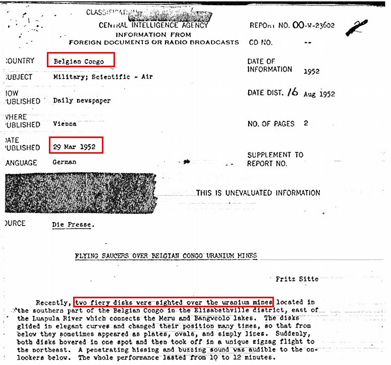 Η CIA δημοσίευσε απόρρητα έγγραφα, τα λεγόμενα και X-Files, στα οποία υπάρχουν αναφορές για UFO. Συγκεκριμένα, στα έγγραφα εμπεριέχονται στοιχεία για περιστατικά που εντοπίζονται κυρίως στην δεκαετία του 1940 και 1950 και περιγράφουν παράξενα αντικείμενα που εντοπίστηκαν από ανθρώπους .