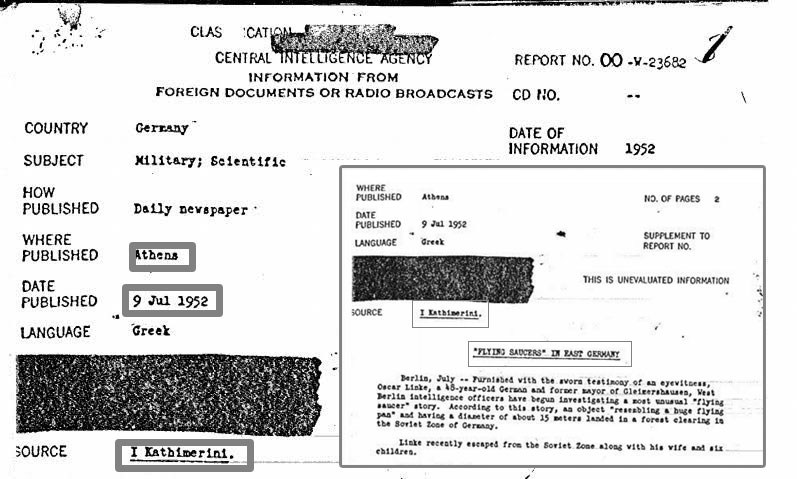Εντύπωση προκαλεί το γεγονός ότι μέσα στα έγγραφα συγκαταλέγεται και δημοσίευμα από το 1952 της ελληνικής εφημερίδας «Καθημερινή», που ήταν γραμμένο στα ελληνικά.