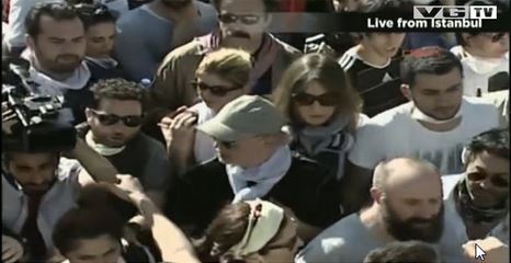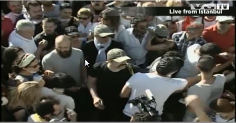 Στην πλατεία Ταξίμ που αυτή την ώρα έχουν επανακαταλάβει οι πολίτες, βρίσκεται μεταξύ άλλων και ο πρωταγωνιστής, της προβαλλόμενης και στην Ελλάδα γνωστής σειράς, «Σουλεϊμάν ο Μεγαλοπρεπής», Χαλίτ Εργκέντς.
