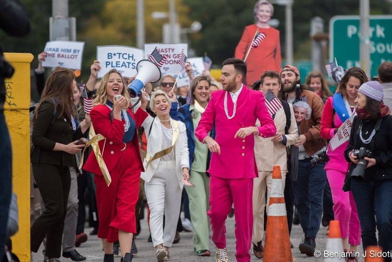 Ενσαρκώνοντας τις νέες δημιουργικές οδούς πολιτικής επικοινωνίας, η ομάδα κάλεσε τα μέλη της να ποζάρουν φορώντας γυναικείο κοστούμι και να φωτογραφηθούν. Κατόπιν να αναρτήσουν την φωτογραφία τους στους ιστότοπους κοινωνικής δικτύωσης δηλώνοντας με αυτόν τον τρόπο την στήριξή τους στην Χίλαρι Κλίντον.