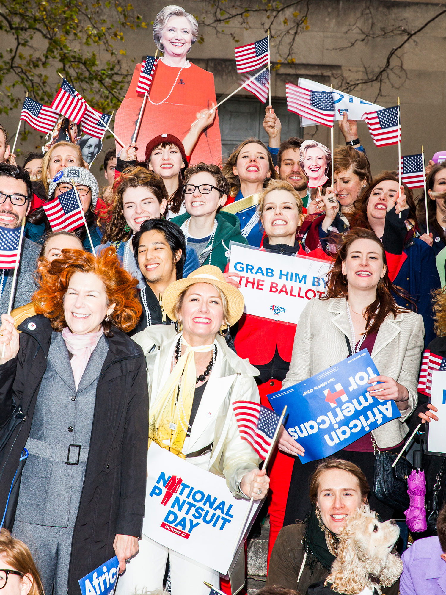 Στην αρχή, επρόκειτο απλά για μια μικρή ομάδα υποστηρικτριών της Χίλαρι Κλίντον που επέλεξαν να φορέσουν το αγαπημένο κομμάτι της γκαρνταρόμπας της πρώην υπουργού Εξωτερικών για να πάνε να ψηφίσουν. Το “Pantsuit Nation” ωστόσο, η τάση που ξεκίνησε με έμπνευση το ντύσιμο της υποψηφίας του Δημοκρατικού Κόμματος, σύντομα πήρε διαστάσεις ενός εθνικού φαινομένου με αποτέλεσμα τα… κοστούμια να συρρέουν σήμερα στις κάλπες υπέρ της Χίλαρι Κλίντον.