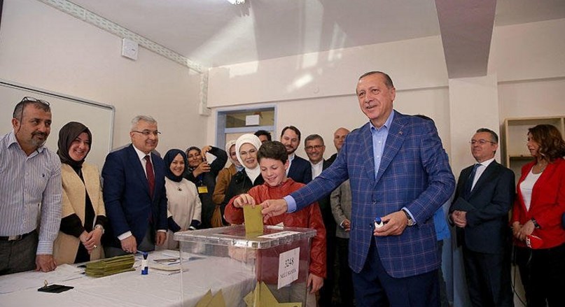 Ο Ερντογάν ψήφισε μαζί με την σύζυγό του ενώ τους φακέλους έριξαν στην κάλπη τα εγγόνια τους.