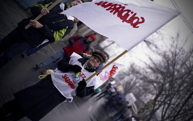 Οι διαδηλωτές βγήκαν στους δρόμους με σφυρίχτρες και σειρήνες, ενώ κρατούσαν εκατοντάδες πανό και σημαίες του συνδικάτου. Ο επικεφαλής της Αλληλεγγύης Πιοτρ Ντούντα διάβασε τα αιτήματα των διαδηλωτών.Σύμφωνα με το σχέδιο νόμου η ηλικία συνταξιοδότησης, που τώρα είναι τα 60 χρόνια για τις γυναίκες και τα 65 για τους άνδρες, αναμένεται να αυξηθεί σταδιακά από το 2013 για να φτάσει το 2020 τα 67 χρόνια για τους άνδρες και το 2040 για τις γυναίκες.