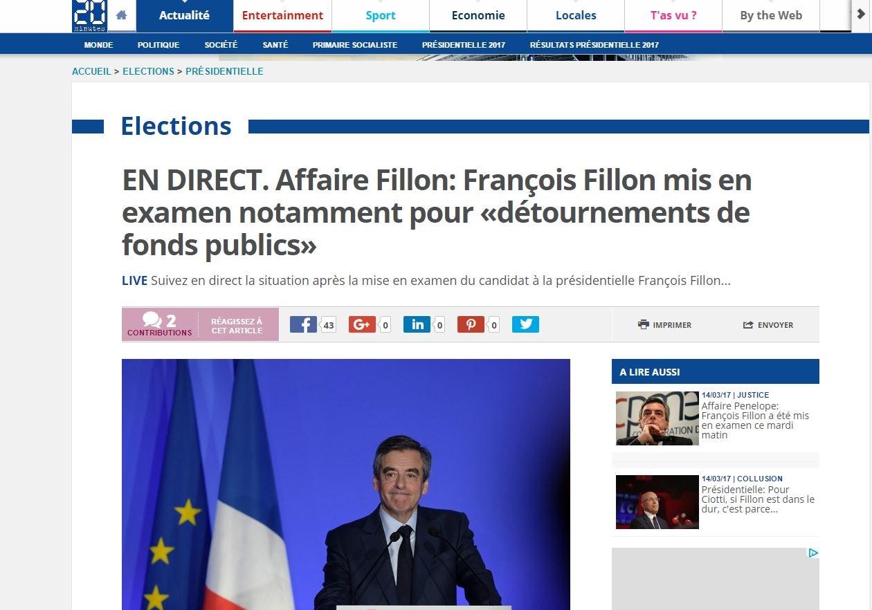 Μεγάλες δικαστικές φουρτούνες περιμένουν τον υποψήφιο της γαλλικής Δεξιάς στις προεδρικές εκλογές, Φρανσουά Φιγιόν, ο οποίος – σύμφωνα με τα γαλλικά ΜΜΕ – αντιμετωπίζει την κατηγορία κατάχρησης δημόσιου χρήματος.Συγκεκριμένα, η κατηγορία απαγγέλθηκε στον Φιγιόν μετά τις καταγγελίες ότι καταχράστηκε δημόσιο χρήμα απασχολώντας σε εικονικές δουλειές στο βουλευτικό του γραφείο τη σύζυγό του και δύο παιδιά τους.Ο Φιγιόν έχει παραδεχθεί ότι είχε τους συγγενείς του, όμως υποστηρίζει ότι εργάζονταν κανονικά και συνεπώς κέρδισαν τις αμοιβές τους.Να θυμίσουμε, επίσης, ότι Φιγιόν είχε δηλώσει πρόσφατα ότι θα παραιτηθεί από το προεδρικό χρίσμα των Ρεπουμπλικάνων εάν τεθεί υπό επίσημη έρευνα. Έκτοτε, όμως, έχει αλλάξει γραμμή, διαμηνύοντας ότι δεν πρόκειται να παραδώσει την υποψηφιότητα.ΠΗΓΗ: 2Ominutes.frΔείτε το δημοσίευμα: