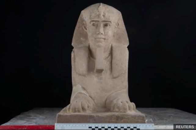 Το υπουργείο Αρχαιοτήτων ανακοίνωσε ότι το άγαλμα του μυθικού αυτού τέρατος, με κεφάλι ανθρώπου και σώμα λιονταριού, είναι κατασκευασμένο από ψαμμόλιθο.
