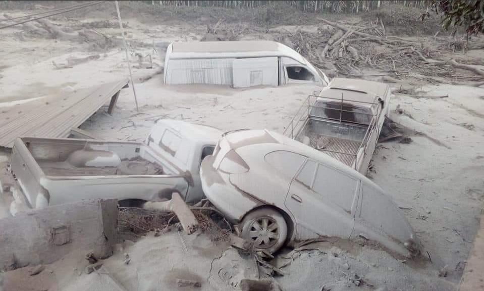 Πλάνα που μετέδωσαν την Κυριακή τηλεοπτικά δίκτυα ή αναρτήθηκαν σε ιστότοπους κοινωνικής δικτύωσης εικονίζουν ένα τεράστιο νέφος ηφαιστειακής τέφρας που κατεβαίνει από το ηφαίστειο και καλύπτει τον δρόμο ενώ κάτοικοι, καλυμμένοι από τη στάχτη, και μέλη των σωστικών συνεργείων τρέχουν να φύγουν για να σωθούν.