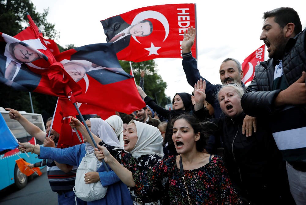 Στους δρόμους βρίσκονται, ήδη, χιλιάδες υποστηρικτές τουΡετζέπ Ταγίπ Ερντογάν και πανηγυρίζουν για τη διαφαινόμενη νίκη του «Σουλτάνου» στις προεδρικές εκλογές της Τουρκίας.Στα χέρια τους κρατούν τουρκικές σημαίες με το πρόσωπο του Ερντογάν και σημαίες του κόμματος Ανάπτυξης και Δικαιοσύνης (ΑΚΡ).Οι περισσότεροι από αυτούς έχουν συγκεντρωθεί στην περιοχή Θεραπειά της Κωνσταντινούπολης και έξω από τα κεντρικά γραφεία του AKP στην Άγκυρα.