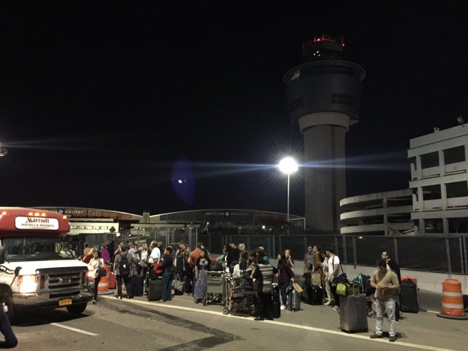 Αρκετοί επιβάτες που περίμεναν στον τερματικό σταθμό Β του αεροδρομίου LaGaurdia στη Νέα Υόρκη, ανέβασαν φωτογραφίες στο Twitter, με άντρες των δυνάμεων ασφαλείας να κινούνται στους χώρους του αεροδρομίου, ενώ οι επιβάτες στέκονταν ή κινούνταν έξω από τον τερματικό σταθμό.