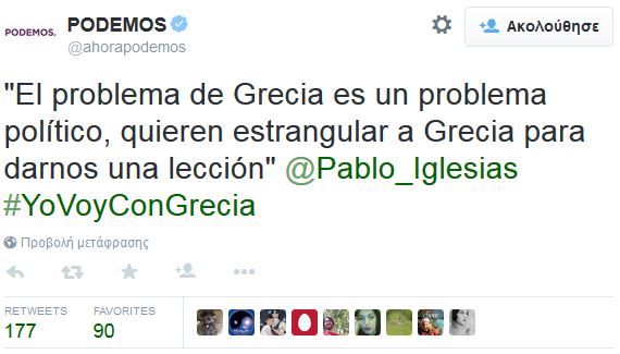 Podemos: Ο Τσίπρας δεν υποχώρησε στους μισθούς και τις συντάξεις
