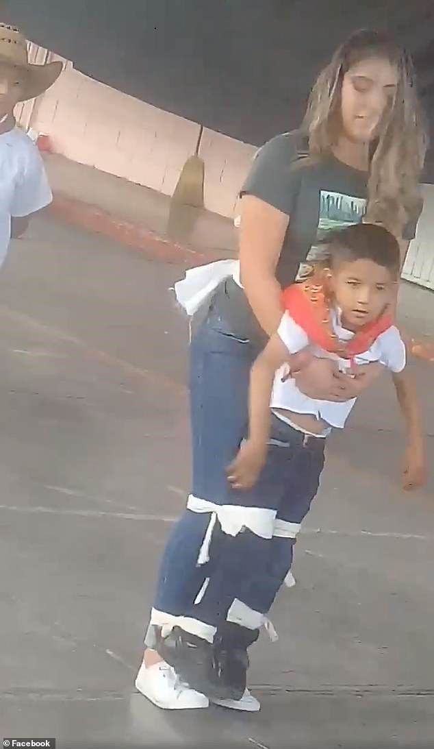 Η Melissa αποφάσισε να δέσει με πανιά το αγοράκι πάνω στο δικό της σώμα και μαζί να χορέψουν στον ρυθμό του τραγουδιού, μαζί με τους υπόλοιπους μαθητές του δημοτικού σχολείου Gabriela Mistral.