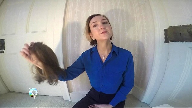 Κοιτώντας την κάμερα η δημοσιογράφος βγάζει την περούκα που φορά λέγοντας πως «έχω χάσει το 50% των μαλλιών μου κάτι που μου είναι πολύ δύσκολο»