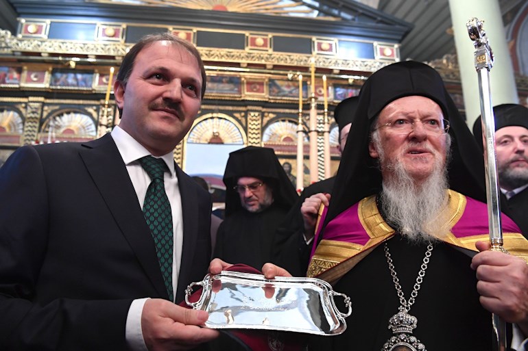 Ο Οικουμενικός Πατριάρχης τέλεσε την Κυριακή την πρώτη λειτουργία μετά την ανακαίνιση του ναού ευχαριστώντας, μάλιστα, τον Τούρκο πρόεδρο, Ρετζέπ Ταγίπ Ερντογάν, για την αναστήλωση του Αγίου Γεωργίου.