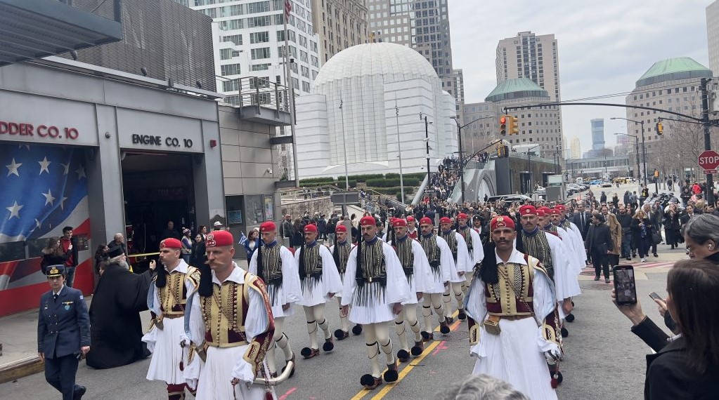 Στιγμές με έντονο ελληνικό χρώμα διαδραματίστηκαν την Παρασκευή 28 Μαρτίου, κατά τη διάρκεια της έπαρσης της ελληνικής σημαίας στο Πάρκο του Μπόουλινγκ Γκριν της Νέας Υόρκης, αλλά και της παρέλασης του Αγήματος των Ευζώνων της Προεδρικής Φρουράς στη διαδρομή από το Εθνικό Προσκύνημα του Αγίου Νικολάου στο Σημείο Μηδέν.