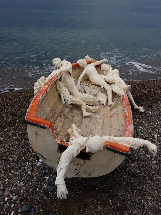 Η έκφρασή τους απεικονίζει την αγωνία τους. Τα πρόσωπά τους είναι τρομοκρατημένα, τα μάτια τους μένουν ορθάνοιχτα αναμένοντας για ένα ελπιδοφόρο σημάδι και τα χείλη τους είναι σφραγισμένα και με τη γεύση της πίκρας λόγω της απογοήτευσης! Ταξιδεύουν σε μια σαθρή βάρκα, ανάμεσα σε πανύψηλα κύματα, έχοντας όμως στην πλώρη τους την ελπίδα. Μοναδικής τους προσδοκία να αντικρύσουν στον μακρινό ορίζοντα το περίγραμμα ενός νησιού, κάτι που θα θέσει τέλος στον εφιάλτη τους».