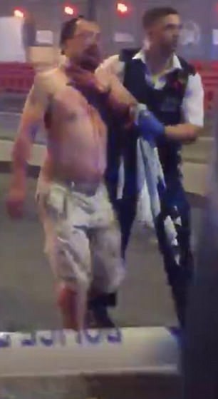 Στο σοκαριστικό βίντεο, βλέπουμε τον Geoff Ho να απομακρύνεται από το σημείο της επίθεσης, ενώ αιμορραγεί, κρατώντας τον λαιμό του.