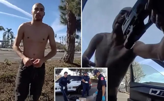 Ένα συγκλονιστικό βίντεο από κάμερα σώματος δείχνει τη στιγμή που μια αστυνομικός ικετεύει για τη ζωή της, αφού ένας ημίγυμνος ύποπτος έκλεψε το όπλο της λίγο πριν από μια θανατηφόρα ένοπλη επίθεση στην Καλιφόρνια.