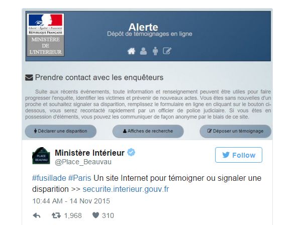 Σημειώνεται ότι όποιος επιθυμεί μπορεί να δηλώσει εξαφάνιση σε ειδική ιστοσελίδα που δημιούργησε το υπουργείο Εσωτερικών της Γαλλίας.