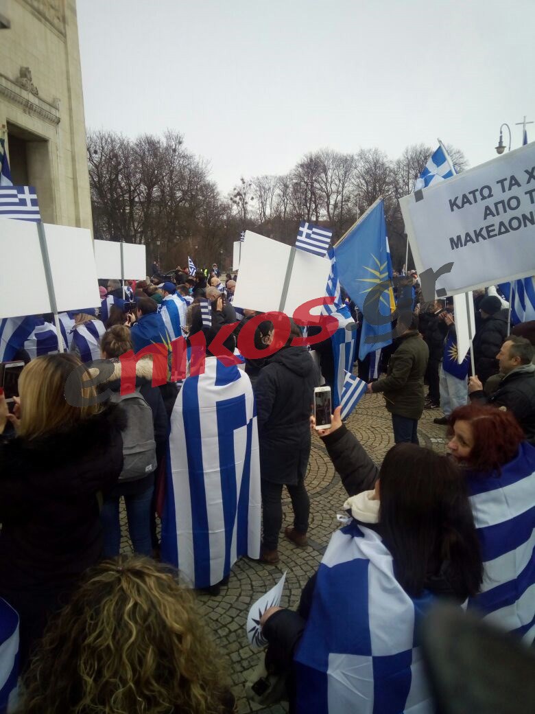Κρατώντας ελληνικές σημαίες και με το σύνθημα “Κάτω τα χέρια από τη Μακεδονία” διαδήλωσαν κατά της χρήσης του όρου “Μακεδονία” στην ονομασία των Σκοπίων.