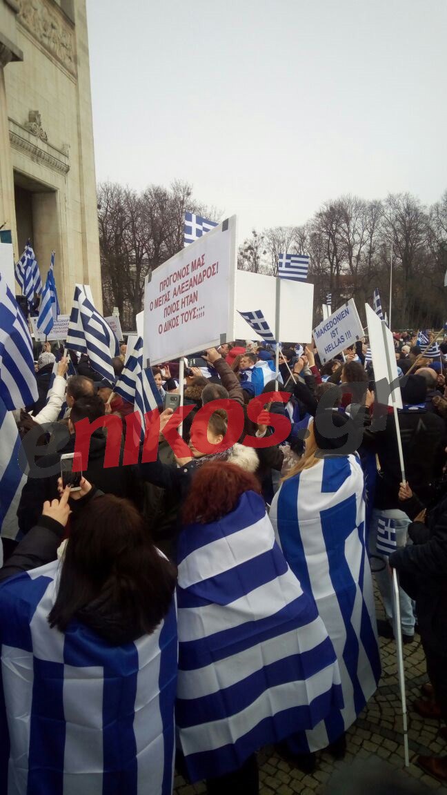 Κρατώντας ελληνικές σημαίες και με το σύνθημα “Κάτω τα χέρια από τη Μακεδονία” διαδήλωσαν κατά της χρήσης του όρου “Μακεδονία” στην ονομασία των Σκοπίων.