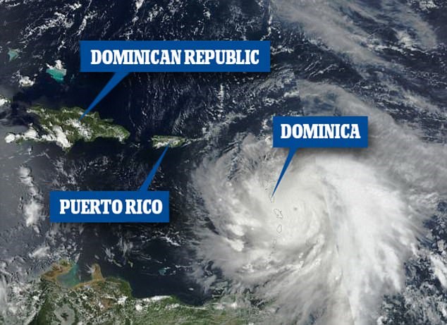 Το μάτι του κυκλώνα Μαρία, ο οποίος ενισχύθηκε σε κατηγορία 5, την ανώτατη της κλίμακας Σαφίρ-Σίμσον, βρίσκεται πάνω από το νησί Δομινίκα της Καραϊβικής, σύμφωνα με το αμερικανικό Εθνικό Κέντρο Κυκλώνων (NHC).